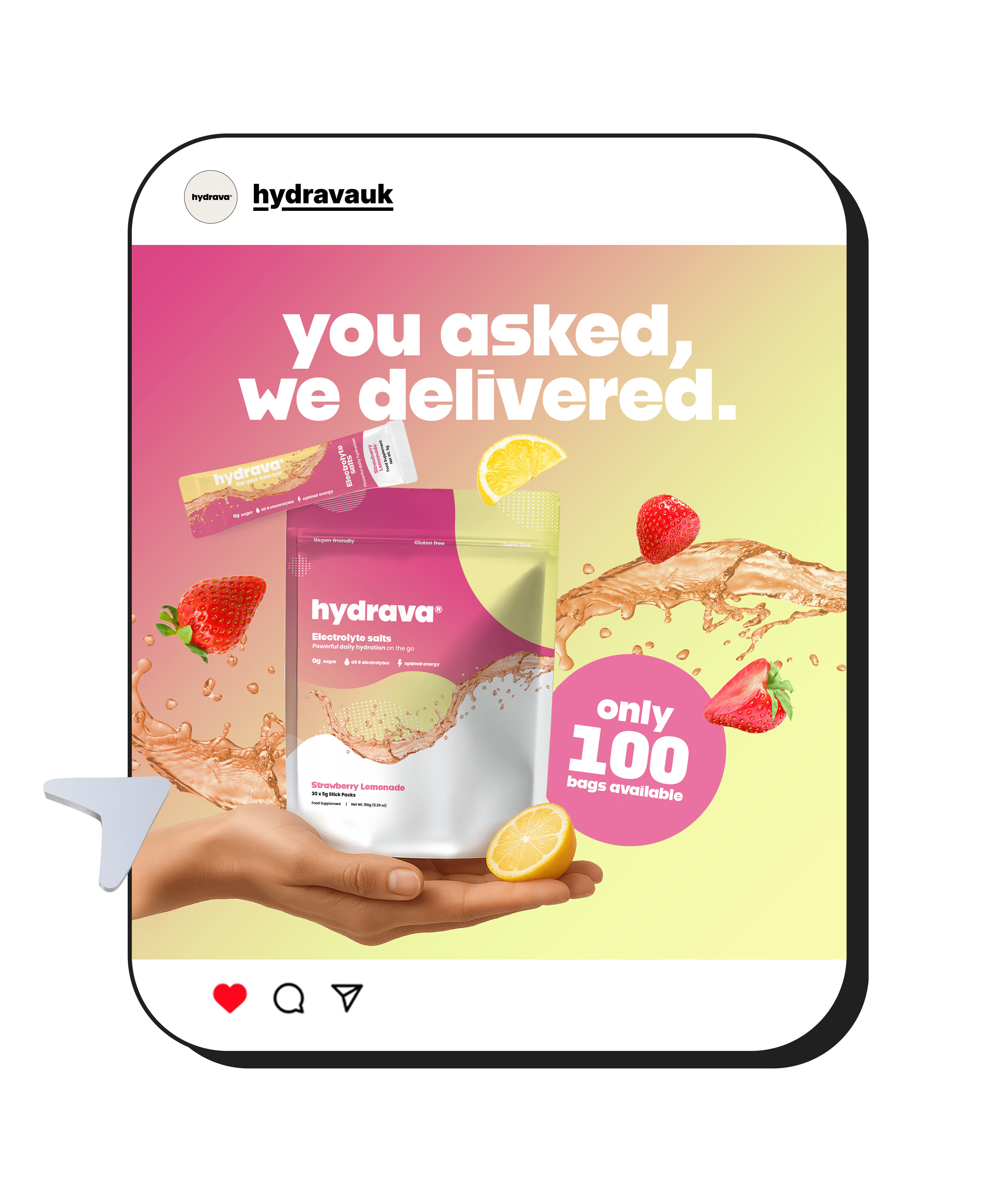 Hydrava partnered with us after a disappointing launch with another agency, where NCPA was unprofitable, creatives missed the mark, and the brand wasn’t reaching its potential. Just six months later, after selling out twice, Hydrava is now scaling aggressively, developing new products, and working hard to keep up with demand!